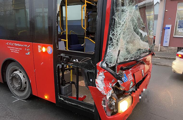 Der Zusammenstoß ereignete sich gegen 6.45 Uhr in der Rodacher Straße. Weil der Busfahrer einem Fahrzeug im Gegenverkehr ausweichen musste, scherte er nach rechts aus und kollidierte dabei mit einem Baustellenfahrzeug, das am Straßenrand geparkt war.