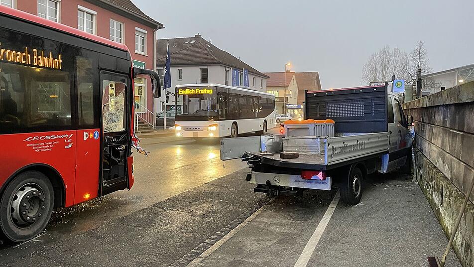 Am frühen Freitagmorgen (14. Januar 2022) kam es in Kronach zu einem Unfall: Ein Linienbus musste dem Gegenverkehr ausweichen und stieß mit einem geparkten Fahrzeug zusammen. Im Bus befanden sich mehrere Personen.