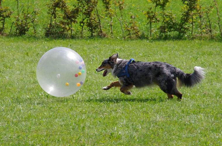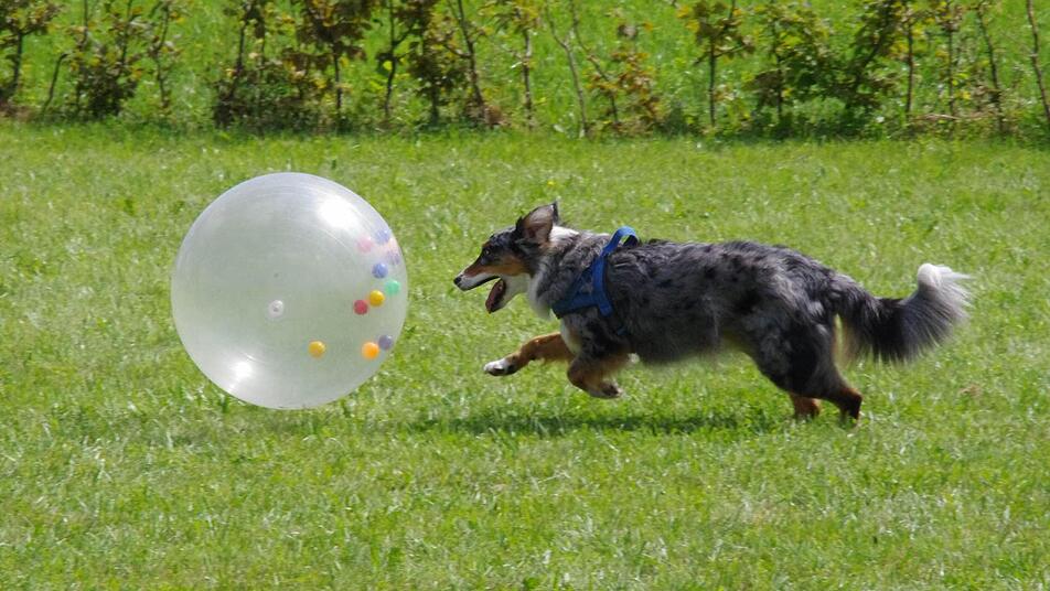 Das bedeutet: Fehler dürfen vorkommen, die Leistung steht nicht im Mittelpunkt, sondern es geht um das Miteinander von Zwei- und Vierbeiner. "Eines der Erfolgserlebnisse ist: Es findet eine intensive Kommunikation statt", erklärt Diethard Runggaldier den interessierten Zuschauern. Ähnlich wie beim Schafehüten dürfen die Hunde auf ihre Schützlinge - hier größere Bälle - "aufpassen" und sie treiben. Dabei stimmen sie ihr Verhalten per Kommandos mit Herrchen oder Frauchen ab.