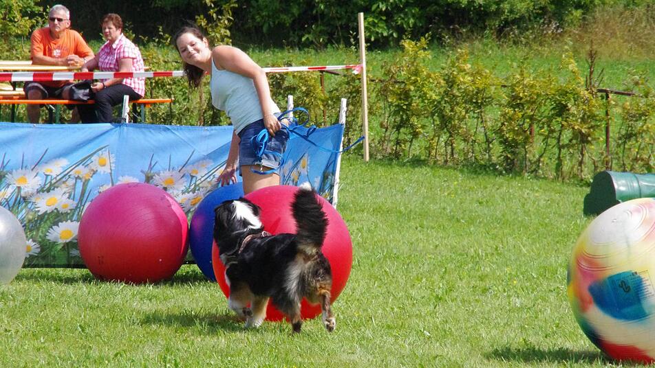 Bärbl Runggaldier zeigt in die Ferne. Dann eine Geste mit der flachen Hand. "Alika" stoppt. Die erfahrene Hundetrainerin Bärbl Runggaldier gibt ruhig einige weitere Kommandos, dann fegt ihre Australien-Shepherd-Hündin zu ihr zurück. Dabei treibt "Alika" einen durchsichtigen Ball vor sich her, in dem viele kleine Bälle auf und ab springen. Applaus! Die Besucher des Kronacher Tierheimfestes haben interessiert verfolgt, wie das Duo gezielt einen der vielen Bälle ausgewählt und ins Ziel gelotst hat.