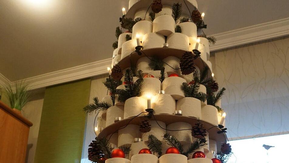 Bettina Ströhlein ahnt jedenfalls nichts, als sie am Freitag vor dem Ersten Advent von der Arbeit nach Hause kommt. Plötzlich steht da ein Baum aus Toilettenpapierrollen. "Ich war geschockt", sagt sie. Ihr Mann lacht. Aber wenn er schon einmal da steht, dann kann man ihn ja auch stehen lassen, hat sie gesagt. Und der Baum erhält gerade viel Aufmerksamkeit.