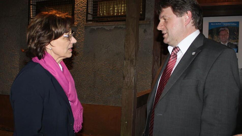 Die bayerische Staatsministerin für Arbeit und Soziales, Familie und Integration, Emilia Müller (CSU), war am Mittwochabend in Hirschfeld, um unter anderem über Familienpolitik und Energiewende zu reden. Dabei unterstrich sich auch ihre Verbundenheit zur Gemeinde Steinbach.