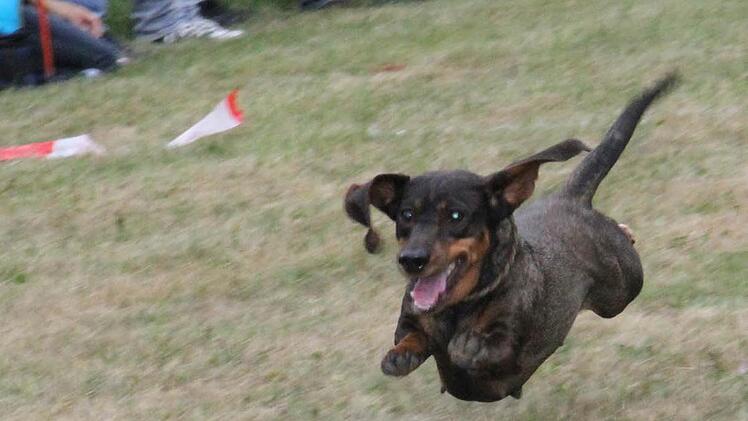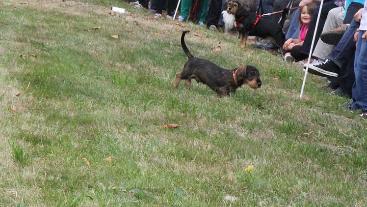 "Sonderwürste für Kaninchendackel oder Zwergdackel gibt es nicht", erklärte der Organisator Jens Schache. Denn so viel kürzer sind die Beine bei diesen kleineren Dackelsorten schließlich auch nicht. Alle Starter der offenen Klasse waren zwischen neun Monaten und acht Jahren alt. Und auch in der offenen Klasse mischte sich so mancher Komiker unter die Teilnehmer.