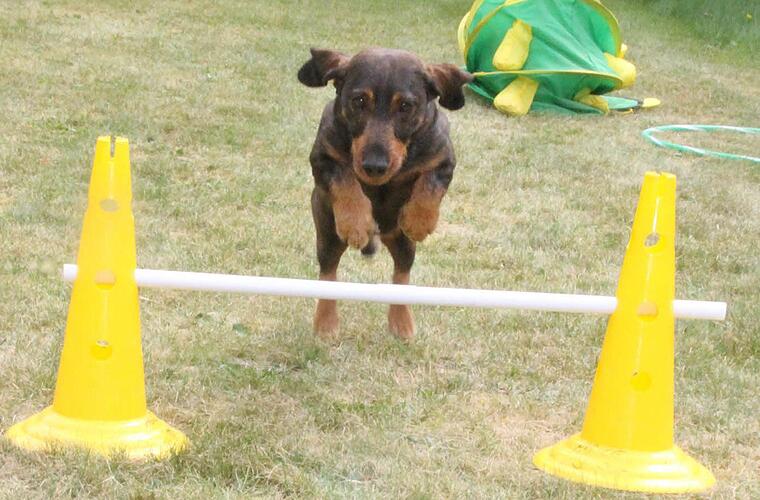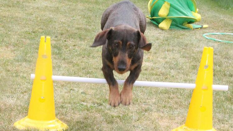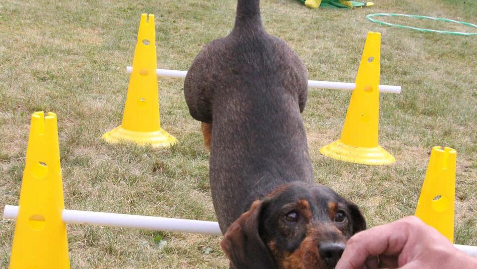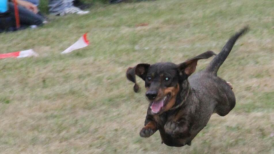 Dackel Sammy ist schon acht Jahre alt. "Ja, er hört eigentlich sehr gut", erklärt Herrchen Hubert Münch aus Weitramsdorf und lässt zum Beweis Sammy von der Leine. Sammy soll, um sich für das große Dackelrennen aufzuwärmen, einmal so zum Spaß den Hindernisparcours bewältigen. Hindernisse, Tunnels - alles kein Problem für Sammy, findet Herrchen.