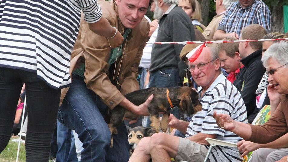 "Oh, die können ganz schön schnell werden", staunte Härtel. Die Seniorendackel flogen genauso über den Parcours und waren genauso verspielt und ideenreich wie auch die Hunde aller anderen Altersklassen. Auch Kurzhaardackeldame Amsel vom Frankenland war mit von der Partie. Sie geht ohne ihre Tochter Zilly (4) keinen Schritt - und gemeinsam verbellten die beiden Kurzhaardackeldamen eigentlich alles, was ebenfalls vier Beine hatte. Doch das regt Besitzer Erwin Mölter, der eigens aus dem Knetzgau angereist ist und nie bei einem Dackelrennen fehlt, gar nicht auf. Denn "gemeinsam sind Dackel einfach doppelt stark", sagt er lachende - und noch im vergangenen Jahr hatte er sogar vier dabei. Die meisten Teilnehmer galt es natürlich auch in diesem Jahr wieder in der offenen Klasse zu verzeichnen. 21 Kurzhaar-, Rauhaar- und Langhaardackel gingen an den Start - in Dreierformationen kämpften sie um den Sieg.
