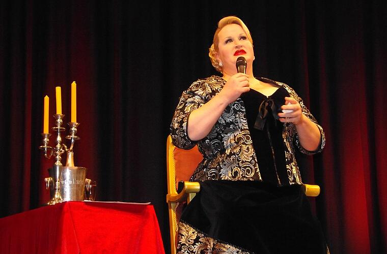 Für ihre Zunge braucht sie einen Waffenschein. Wenn Stand-up-Comedienne und Gesangstalent Daphne de Luxe verbal um sich ballert, dann zielt sie pfeilgerade auf die Lachmuskeln ihres Publikums. Und das liebt sie vor allem für ihren derben, aber ehrlichen Humor. Mit ihrem neuen Programm "Extraportion" setzte sie sich im Kronacher Kreiskulturraum wieder mal selbst die Krone auf. Daphne de Luxe ist aber nicht nur Comedienne, sondern verfügt auch über musikalisches Talent. Eingestreute Gesangseinlagen in Deutsch, Englisch und Französisch machen aus ihrem Programm ein humoristisches Komplettpaket.