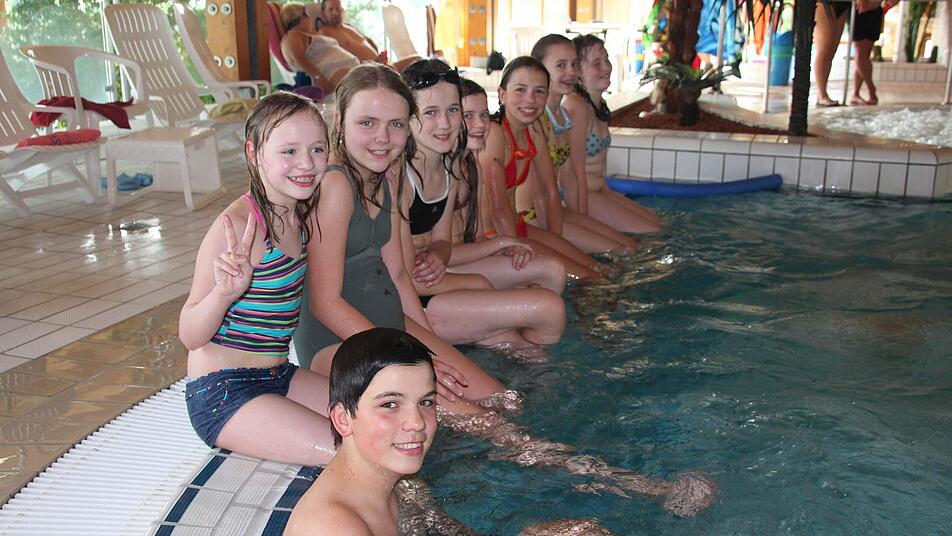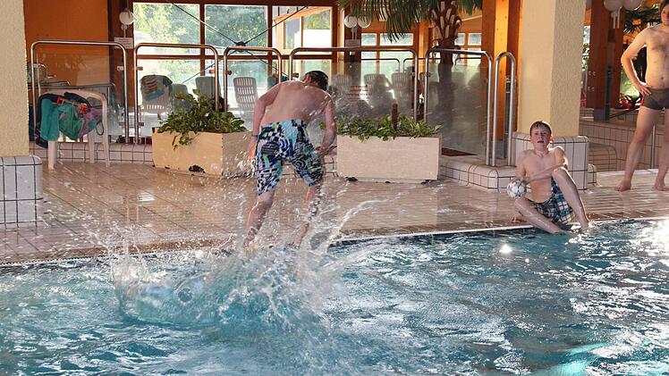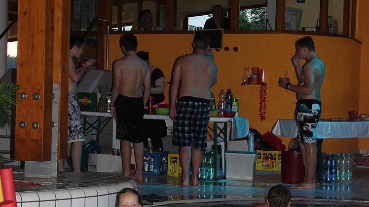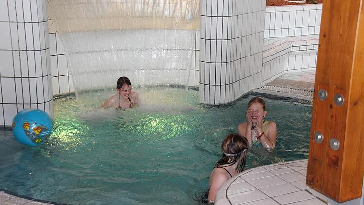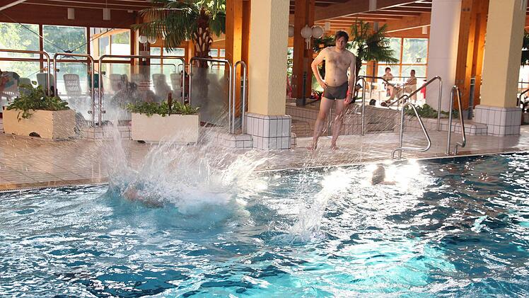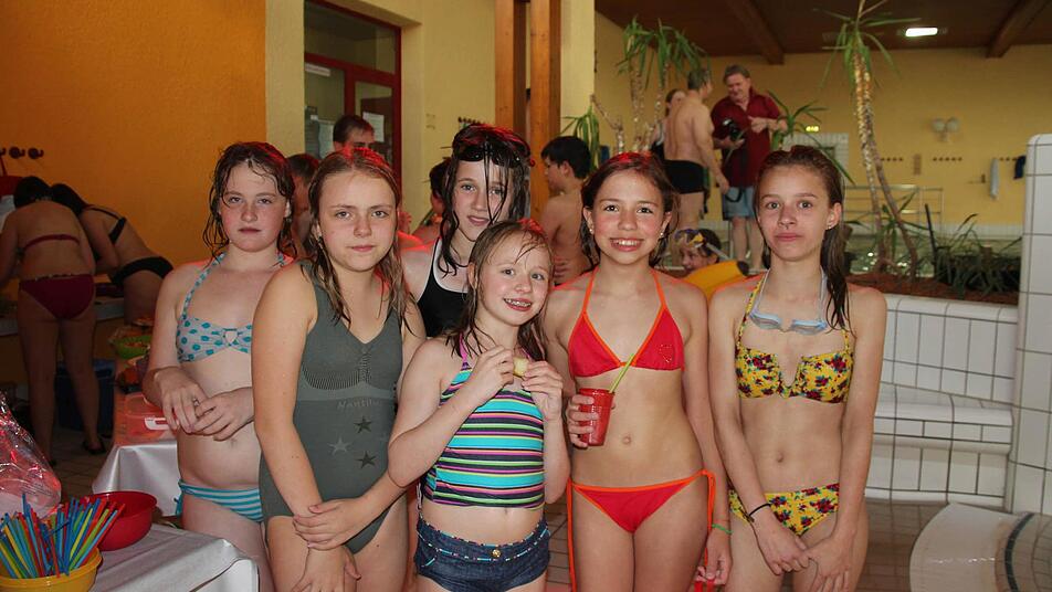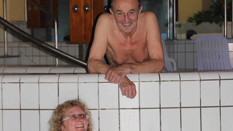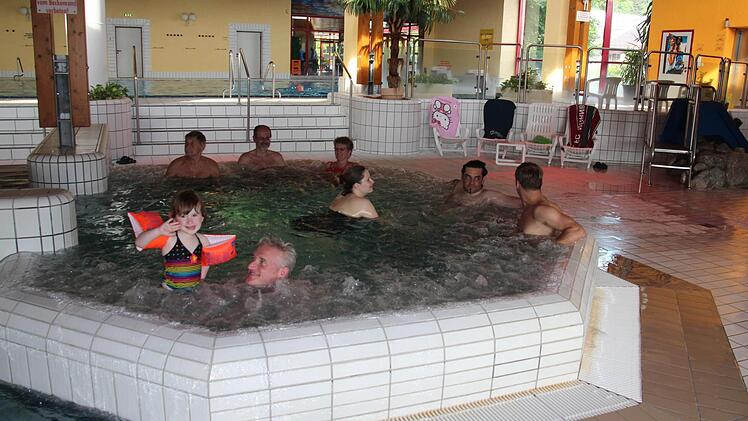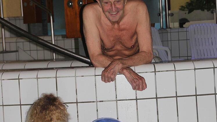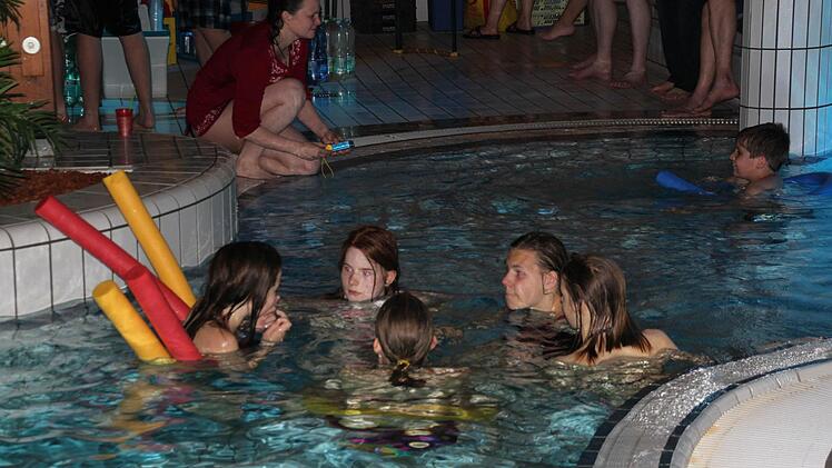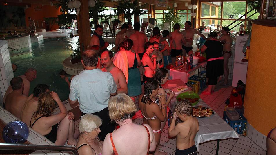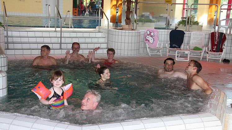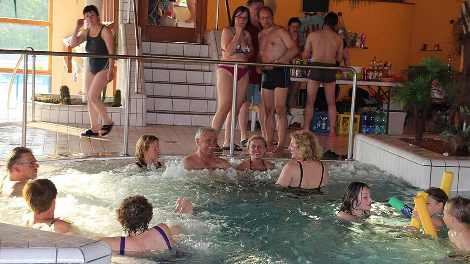Badespaß für Jung und Alt Eine der Jüngsten, die sich im Crana Mare tummelten, war Sarah von der DLRG, die ihren 11. Geburtstag mit ihren Freundinnen feierte. Einer der Ältesten war der BLSV-Kreisvorsitzende Karl-H. Fick, der das Bad zusammen mit seiner Frau zu später Stunde aufsuchte. Und er hielt sich an die Kleiderordnung: Badehose oder -anzug. Nicht so der SPD-Kreisvorsitzende Ralf Pohl und der Kronacher Bürgermeister Wolfgang Beiergrößlein (FW), die von anderen Terminen kamen und ihre Straßenklamotten anließen.