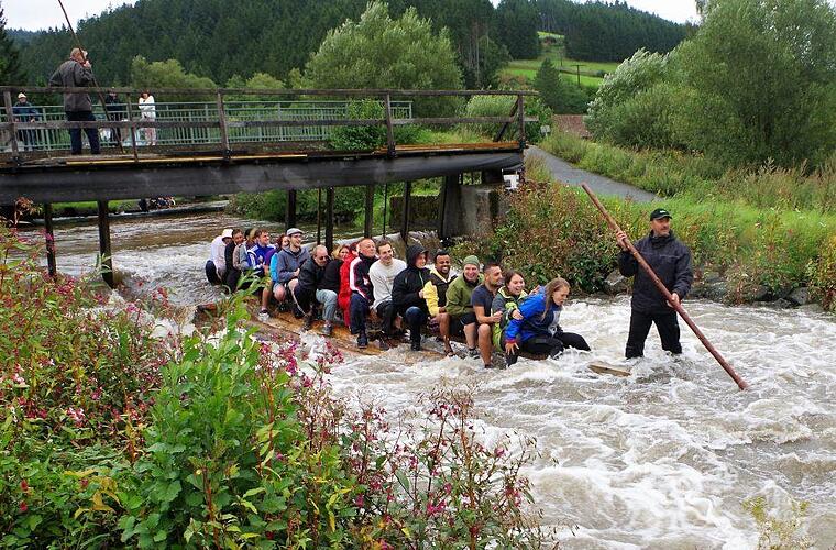 Nachdem alle Teilnehmer auf den zwölf Floßböden am Willi-Schreiber-Flößerhaus wohlbehalten eingetroffen waren, erhielten sie die begehrte Urkunde. Und man war sogar mächtig stolz darauf, denn das Finale war schließlich witterungsbedingt alles andere als ideal. Trotzdem kam bei allen eine Bombenstimmung auf und es wurde - nachdem man mit dieser Teilnahme den inneren Schweinehund überwunden hatte - ausgiebig gefeiert. Zu den aufmerksamen Beobachtern zählte am Samstag auch Ehrenfloßmeister Andreas Müller.