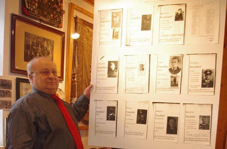 "Besonders tragisch ist beispielsweise auch das Schicksal einer Neuseser Familie, bei der der Vater im Ersten und der Sohn im Zweiten Weltkrieg ums Leben kann", erzählt Hans Schrepfer, der die Idee für diese Ausstellung schon Jahre im Kopf hatte, sie nun heuer verwirklicht hat und damit zwar nicht allen - aber doch einem Großteil - der Vermissten und Gefallenen ein Gesicht geben konnte.