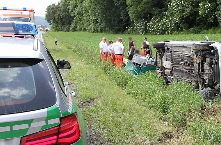 Ein spektakulärem Abflug von der Bundesstraße 173/303 hat am Freitagnachmittag für eine junge Familie ein glimpfliches Ende genommen.
