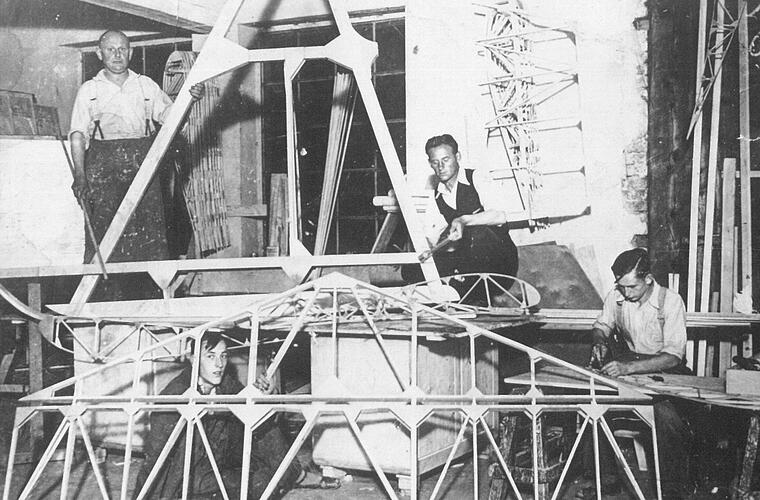Ein Meilenstein wurde 1936 gelegt. Damals bekamen die "Aeronauten", wie sie sich nannten, ein Auto von der Brauerei Koch. Damit konnten die Flugzeuge per Autoschlepp in die Luft befördert werden. Schon im Frühling 1937 wurde die Flughalle auf dem Kreuzberg gebaut.