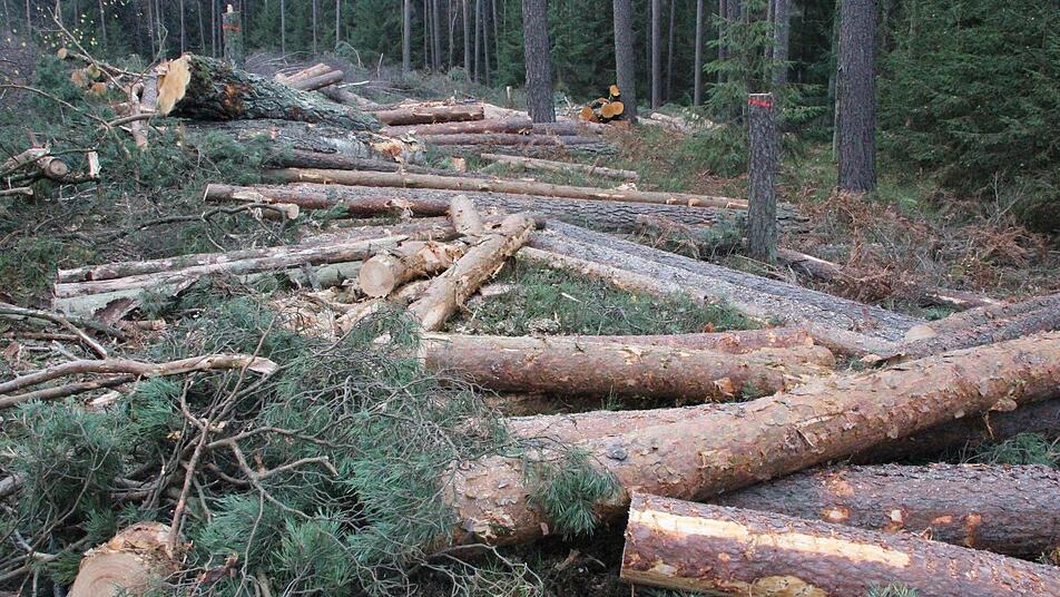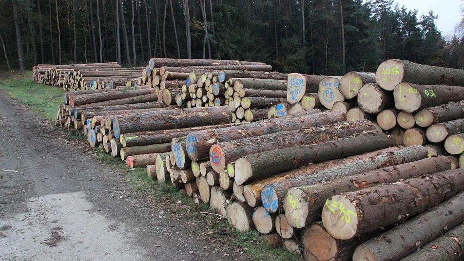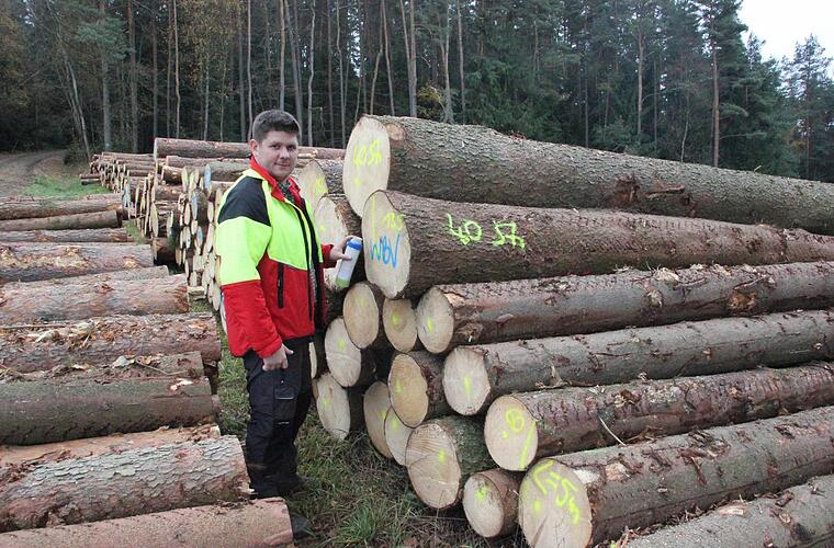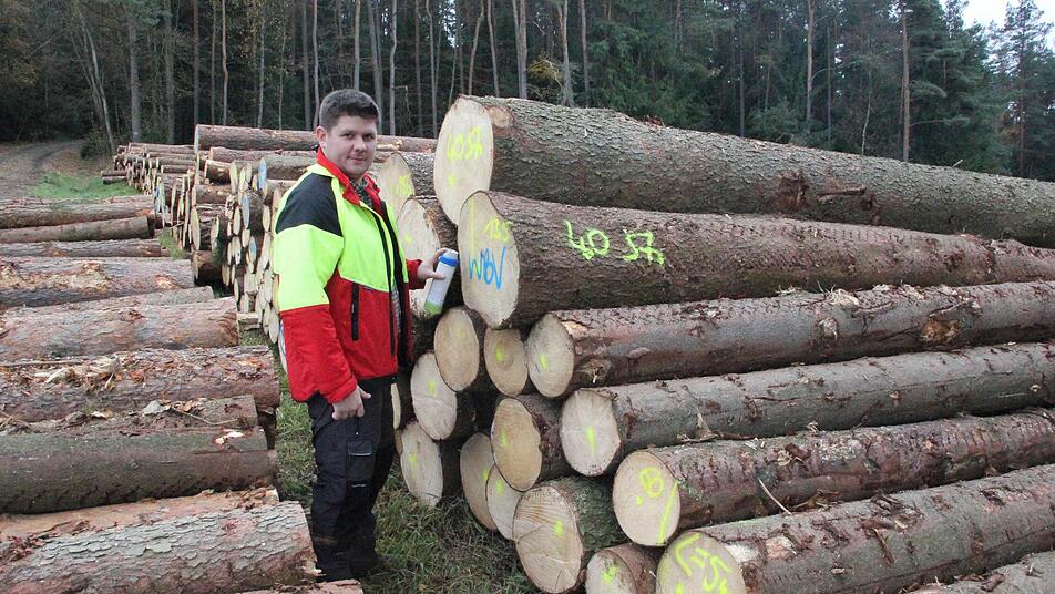 für das Holz", freut sich der Einsatzleiter. Die Stücke werden in verschiedene Qualitäten sortiert. Jede Länge und Stärke geht an einen anderen weil meistbietenden Interessenten. "Die Vier-Meter-Fixlängen der Fichte mit einem hohen Mittendurchmesser nimmt ein Sägewerk aus dem Kreis Kronach. Das sucht diese starken Stücke und zahlt gut", berichtet Tobias Wicklein. Die schwächeren Fichten-Fixlängen gehen als Fünf-Meter-Stücke an ein Sägewerk in Thüringen. Dafür wurde ebenfalls ein Top-Preis ausgehandelt. Kiefern-Stücke werden von einem weiter entfernten Säger aufgekauft. Palettenholz hat oft Faulstellen und deshalb eine schlechtere Qualität. Das wird in zweieinhalb-Meter-Stücken verkauft. Das Papierholz, früher Schleifholz genannt, wird in zwei und drei Meter Länge geschnitten. Eine weitere Abstufung ist das Brennholz.