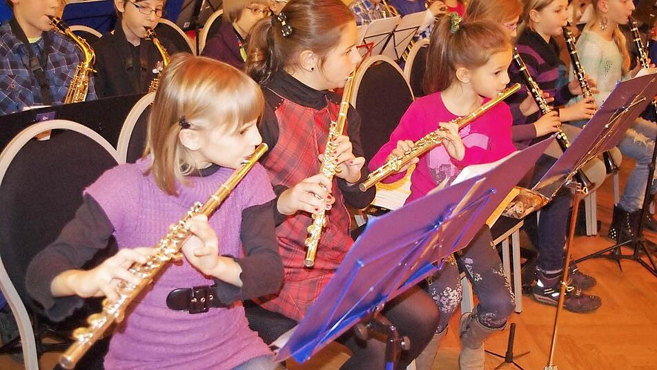 Maria, Laura und Theresa saßen in der ersten Reihe. Die drei Mädchen spielen erst seit einem Jahr beziehungsweise seit eineinhalb Jahren Querflöte. Am Samstag wirkten sie im Kidsorchester mit. Maria Lieb ist elf Jahre, Laura Rampacher und Theresa Koch sind zwei Jahre jünger.