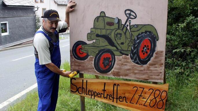 Viele Vorbereitungen Mit dabei sein wird auch wieder Michael Renk. Der Zeugwart, der das Vereinsinventar pflegt, hat bereits im Vorfeld die Schilder angebracht, die auf das große Event in Tschirn hinweisen. "Rund sechs Wochen vorher hole ich die Tafeln aus meiner Scheune, aktualisiere das Datum und stelle sie an den Ortseingängen auf", erklärt Michael Renk. Hilfreich stehen ihm dabei sein Sohn und seine Frau zur Seite. Beim Fest selbst ist Michael Renk für das Kennzeichnen und Beschildern der Rundfahrt und der Parkplätze zuständig. Auch die Einweisung der Parkplätze gehört seit Jahren zu seinen Aufgabenbereich.