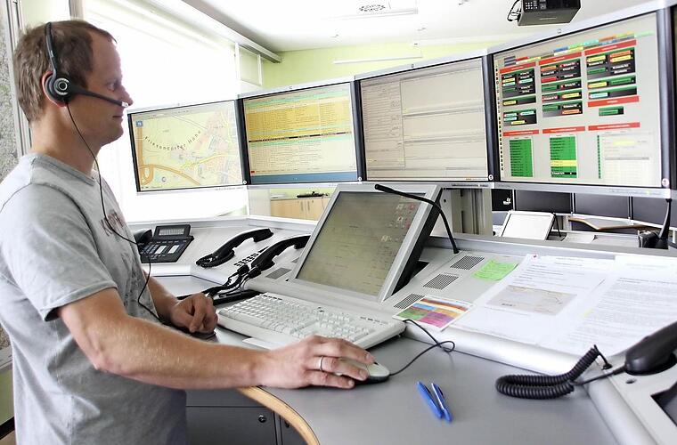 Das bedeutet dann Schwerstarbeit für die drei beziehungsweise nachts zwei Disponenten, die pro Schicht parallel im Einsatz sind. Zwei weitere haben Bereitschaft - einer im streng abgesicherten Gebäude, ein weiterer zuhause.