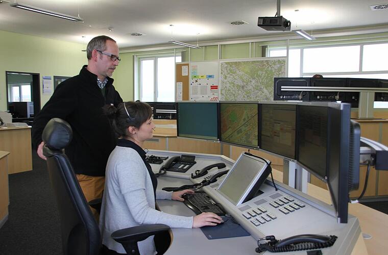 Nur wer die 110 wählt, landet nach wie vor bei der Polizei. Früher lief dort in der Regel auch die 112 auf, doch seit knapp vier Jahren werden die Polizisten durch die ILS entlastet. Zwischen 8 und 20 Uhr sind vier Disponenten in der Leitstelle, davon einer in Bereitschaft. In den Nachtstunden wird die Stärke um eine Person reduziert. Da es auch noch eine Rufbereitschaft und mehrere nebenamtliche Beschäftigte gibt, kann die Zahl der Plätze bei einem Großschadensereignis in kürzester Zeit auf zwölf aufgestockt werden.