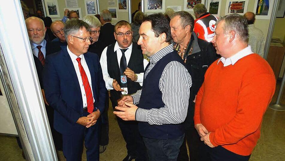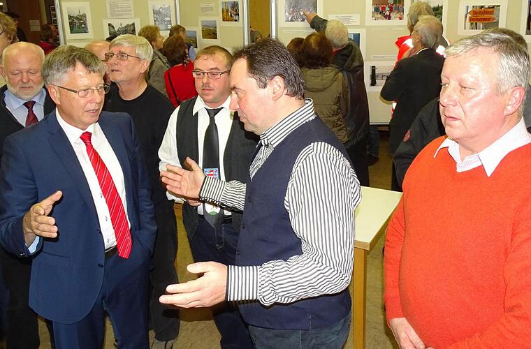 Einen Stock höher in der Klöppelschule empfing der Nordhalbener Kreisheimatpfleger Hans Blinzler die Gäste, die von ihm, zusammen mit NohA-Organisator Otmar Adler, gestaltete Fotoausstellung zu eröffnen.