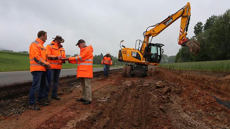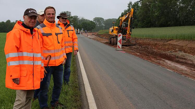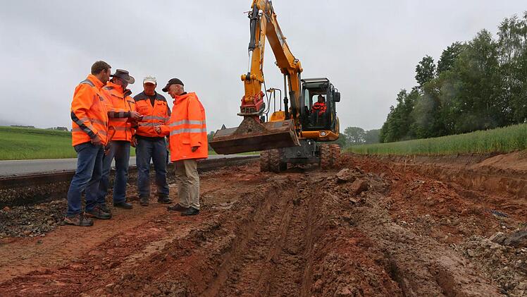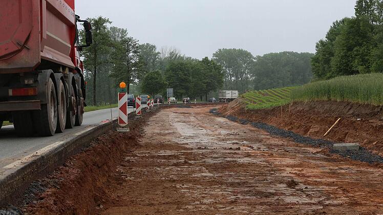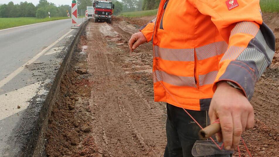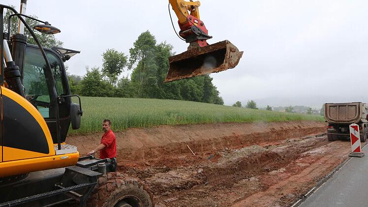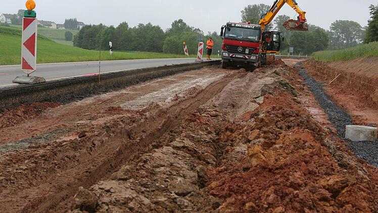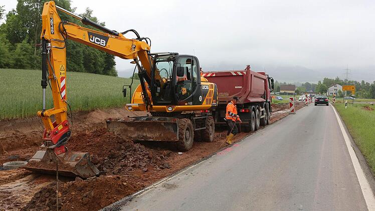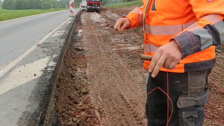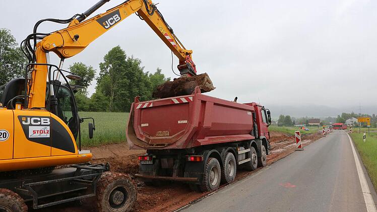Was sich so anschaulich liest, ist für die Männer vom Bau mit einem Riesenaufwand verbunden. Die nördliche Hälfte der Bundesstraße wurde abgesägt, der nicht tragfähige Untergrund bis in Frosttiefe ausgebaggert.