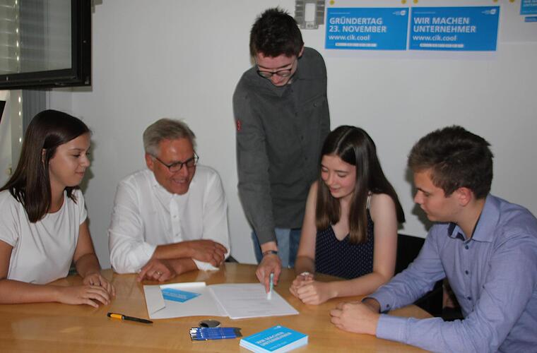 Vier davon sind Jule Ditsche, Hanna Schmidt, Julian Koller und Christin Kuhnlein. Die 16-Jährigen treffen sich freiwillig seit Schuljahresbeginn im 14-tägigen Rhythmus für rund 60 Minuten im bei Loewe ansässigen Campus Innovations-Kultur (CIK). Dort beschäftigen sie sich unter der Anleitung des Geschäftsführers des CIK, Thomas Kneitz, mit Unternehmen und mit der Gründung von Start-ups. Sie befassen sich mit Wirtschaftsthemen, wobei ihnen Wissen und Verständnis für wirtschaftliche Zusammenhänge vermittelt werden.