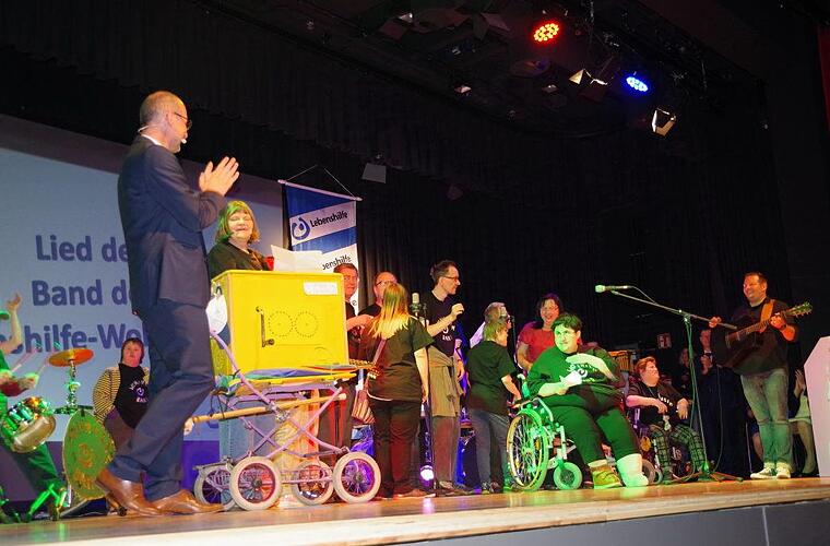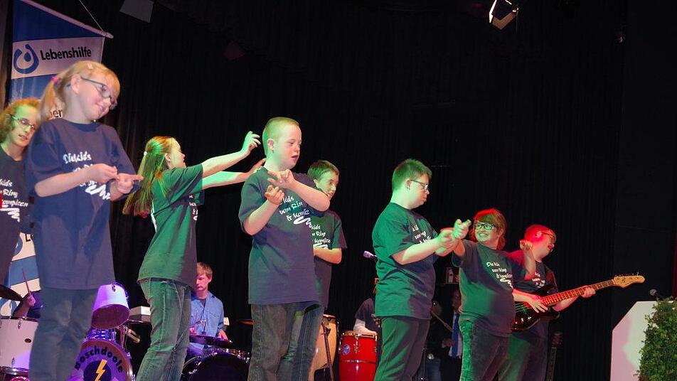Für die Umrahmung sorgen die "Kids vom Ring", die Tanzgruppe der Heilpädagogischen Tagesstätte, die Schulband der Petra-Döring-Schule sowie die Band der Lebenshilfe-Wohnheime. Beim abschließenden Geburtstagslied sangen alle Gäste mit. Aus einer Geburtstagskanone "knallten" bunte Luftschlangen.