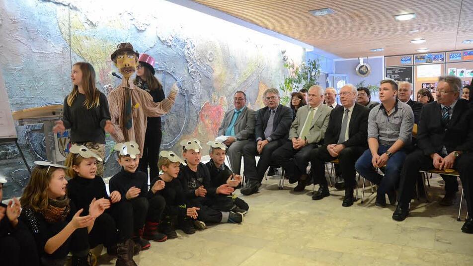 Den kirchlichen Segen erbaten Pfarrerin Claudia Grüning Göll und Pater Helmut Haagen.Die Umrahmung des Festaktes gestalteten die Arbeitsgemeinschaft Schulspiel unter Leitung der Lehrerin Martina Müller sowie ein Bläserensemble der Bläserklasse unter Leitung von Lehrer Bernd Jungkunz.