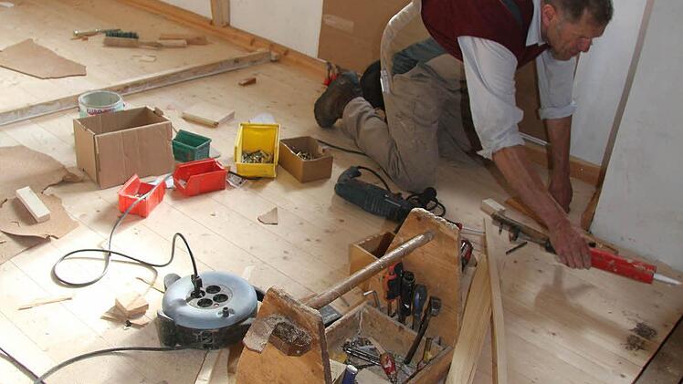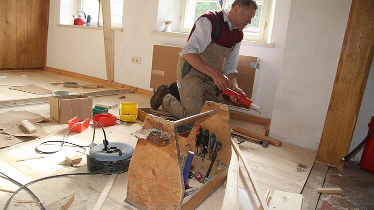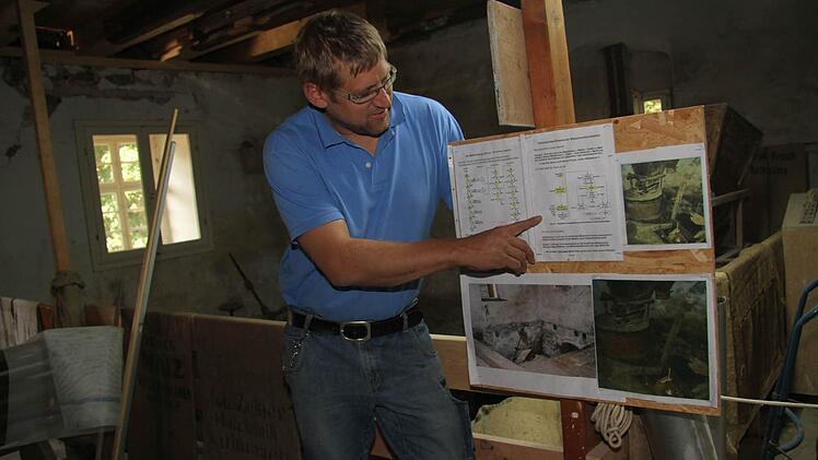 Natürlich hat sich in der Rothmühle seit dem letzten Mühlenfest vor zwei Jahren wieder eine Menge getan. Denn die Sanierung geht stetig, wenn auch langsam, voran. Gerhard Bohl setzt mit ihrer ganzen Familie Fußböden instand, hat die alte Holzdecke, die überputzt war, wieder freilegen lasen. Inzwischen hat die Mühle sogar eine Heizung bekommen - und eine kleine Küche und ein Bad mit Toilette.