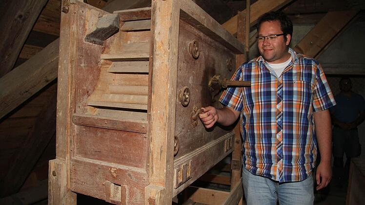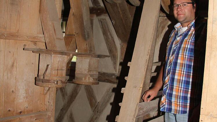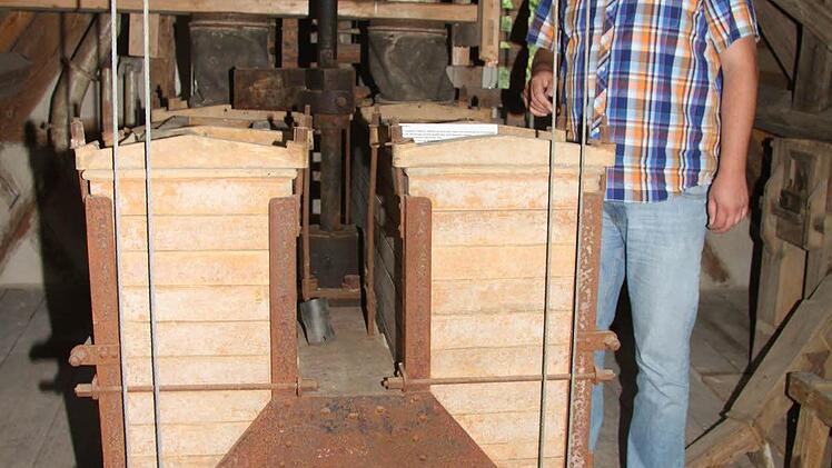Müllermeister Andrea Ehrhardt erklärt beim Mühlenfest die technischen Details, hat viel über die Historie erfahren. Noch heute sind in der alten Rothmühle Balken vorhanden, die von der 450-jährigen Mühlengeschichte erzählen. Und dendrologische Untersuchungen können sogar wissenschaftlich belegen, wann die alten Holzbalken gefällt worden sind - im Winter 1561/62, das können Experten anhand der Jahresringe feststellen.