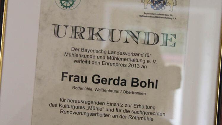 Gerda Bohl hat der letzten Mühlenbesitzerin Luisa Krauß, die 1994 gestorben ist, versprochen, das Andenken der Rothmühle aufrecht zu erhalten und die Mühle, so gut es geht, zu erhalten.