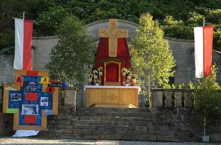 Seit 1995 zeichnet Frank Pfaff für den Jugend-Altar am Kriegerdenkmal verantwortlich. Sowohl der Altar, den symbolisch ein großer "Baum des Lebens" ziert, als auch der Altartisch wurden von ihm kunstvoll angefertigt. Ergänzt wird das wunderschöne Ensemble, das auch an Fronleichnam auf dem Marienplatz zu bewundern war, mit einem prächtigen Blumenschmuck. Den Aufbau übernehmen Frank Pfaff und zwei Helfer jeweils an Fronleichnam ab 6 Uhr sowie am Schwedensonntag ab 6.30 Uhr, wofür sie etwa anderthalb Stunden benötigen. Die textliche Ausgestaltung liegt in Händen der Katholischen Jugend Kronach. Die zweite Altar-Station befindet sich auf der Bastion der Festung Rosenberg. Der dort das ganze Jahr über stehende Granitblock wird traditionsgemäß seit vielen Jahrzehnten von der Kolpings-Familie Kronach geschmückt. Heuer beschäftige man sich - so Matthias Simon - mit der Frage "Woran erkennt man einen motivierten Christen?". Dabei werde man sich mit Gedanken zu sechs Schlagwörtern, zugleich Kernbegriffe der neu angelaufenen Imagekampagne des Kolpingswerks, einbringen. Das Ausschmücken des Altars erfolgt am Sonntag Morgen. Zeit benötigen die circa sechs tüchtigen Helfer und Helferinnen rund eine Stunde.