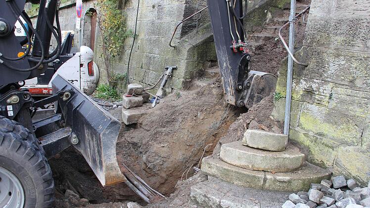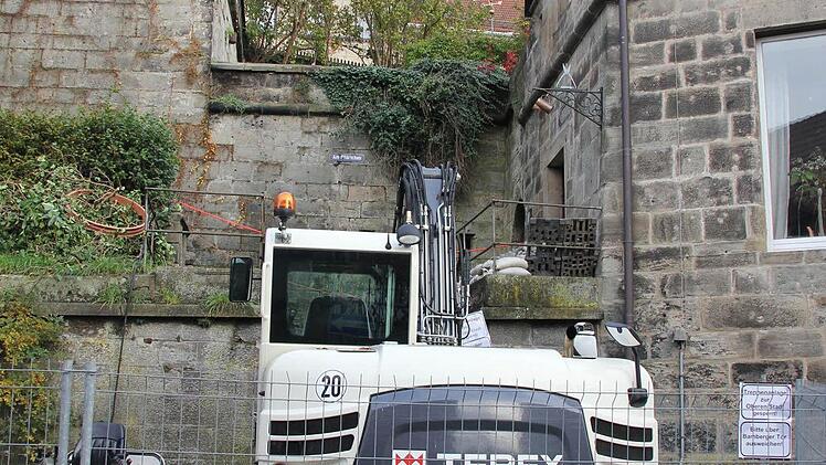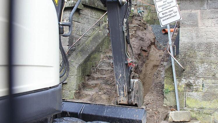 Die so genannten "Tittelsstäffela" zwischen Schwedenstraße und Judengasse in Kronach werden erneuert. Unter ihnen verlaufen künftig zwei Rohre für die Oberflächenentwässerung eines Teils der oberen Stadt.