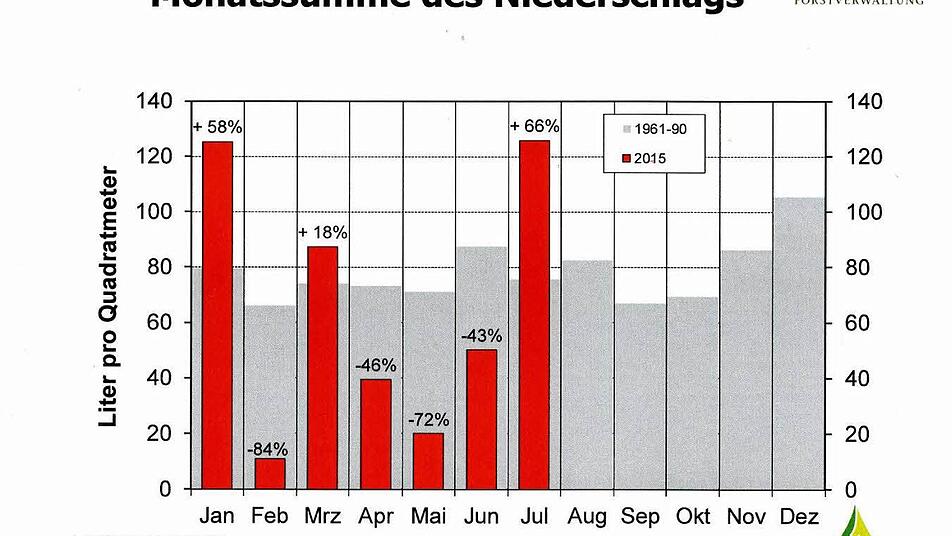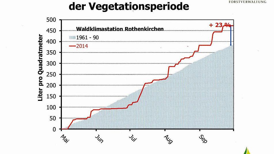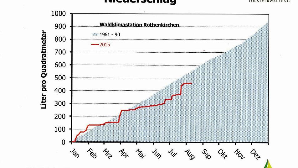 "Was uns fehlt, ist der Landregen, der Schnürlregen, der dringt in das Erdreich ein", seufzt Marcus Hollederer. Besonders drastisch wird das, wenn man sich die Grafik des Niederschlags während der Vegetationsperiode ab Mai ansieht. Da regnete es weniger als 200 Liter - und wenn der Starkregen Ende Juli nicht gewesen wäre, sähe die Statistik noch kläglicher aus.