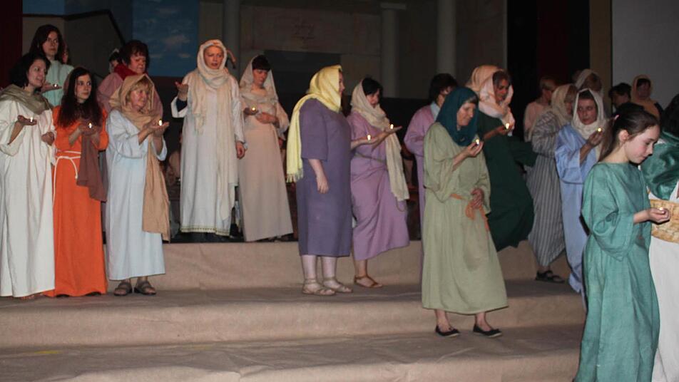 Es ist Montagabend. Rund 70 Laiendarsteller, Chormitglieder und Techniker proben in der Festhalle für ein Schauspiel, das bei den Besuchern tief unter die Haut gehen und nachhaltig beeindrucken soll. "Wenn die Leute reinkommen, müssen sie denken, sie sind in Jerusalem", so Chorleiterin Anja Knabner.