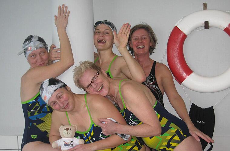 Pech in der Staffel Bei den Staffelwettbewerben in der Altersklasse 170 weiblich starteten 18 Mannschaften. Trotz zweier technischer Fehler, in zwei von vier Staffeln, die jeweils zur Disqualifikation führten, erschwammen Beate Agten, Karin Dressel, beide Teuschnitz, Sandra Engerisser, Kronach, Gabi Grüdl und Barbara Neubauer, beide Teuschnitz, beachtliche Ergebnisse.