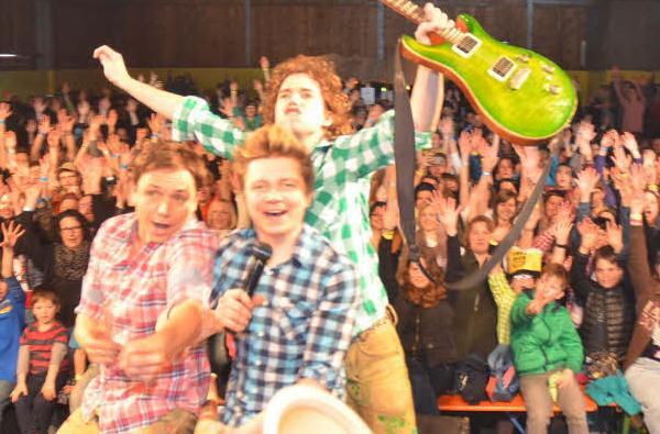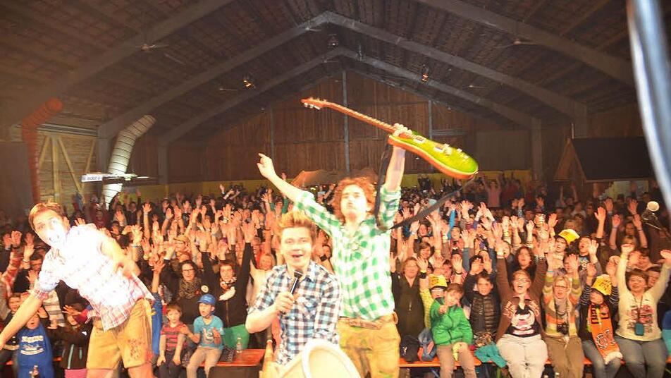 Die "Dorfrocker" konnten dann - gut gestärkt - auf der Bühne mit ihrem abwechslungsreichen Repertoire alle Zuhörer in ihren Bann ziehen. Sie ließen die Fans mitsingen und mitklatschen. So entstand eine Bombenstimmung, und man fühlte sich in der überfüllten Festhalle wie bei einer Ballermann-Party. Doch der Hühnerpalast bleibt natürlich das Markenzeichen für Eichenbühl und hat seinen eigenen Charme - noch dazu wenn drei so sympathische Jungs ihre Songs von der Bühne schmettern.