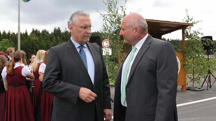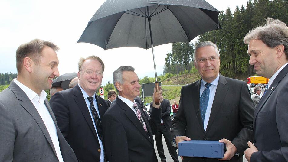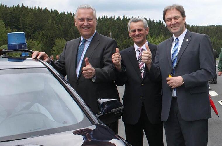 Innen- und Verkehrsminister Joachim Herrmann gab am Samstag die offizielle Freigabe für die dreispurig ausgebaute B 85 zwischen Förtschendorf und Steinbach am Wald - zehn Jahre nach der Machbarkeitsstudie.