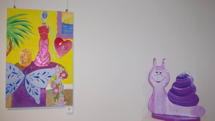 Einen roten Faden findet man bei den Werken nicht - höchstens einen pinken, denn pink ist auf nahezu jedem Bild vertreten. "Selten ging es im Landratsamt so pink zu", meinte dann auch Kreiskulturreferentin Gisela Lang bei der Vernissage. Damit hatte sie zweifelsohne recht.