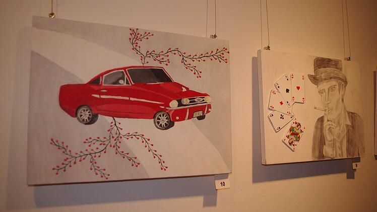 Manchmal malt Beate den Hintergrund und bittet mich, ihn mit Holzelementen zu ergänzen. Manchmal ist es umgekehrt. Manchmal haben wir auch die gleichen Ideen. Aber immer überrascht uns das Ergebnis. Es gibt kein Bild, das so geworden ist, wie wir zunächst gedacht haben", erzählt Kadda Sandner. So verhielt es sich auch mit dem Bild "Kartenspieler", das beide als ihr Lieblingswerk bezeichnen. "Das Bild war ganz anders geplant. Es war eigentlich meine erste Bleistift-Zeichnung. Kadda hat die Karten dazu gemacht. Das war ein richtiger wow-Effekt", erinnert sich Beate Dietz, die Rechtswissenschaften studiert. Zur Kunst kam die 23-Jährige in ihrer Schulzeit am Frankenwald-Gymnasium. "Eine Kunstlehrerin hat mich ermutigt und mir viel beigebracht", sagt sie dankbar. Auch ihr Freund unterstütze sie bei ihrer Schaffenskraft.