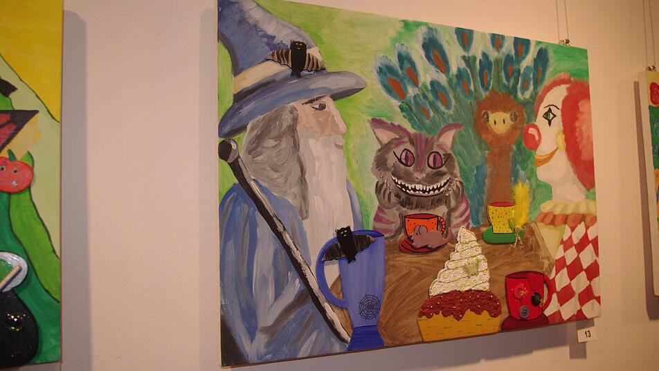 Eine pink-graue Katze, die mit einem Pfau, einem Zauberer und einem Clown am Tisch gemütlich Tee trinkt, vor sich eine aufgetürmte süße Köstlichkeit - Das Bild "Teamtime" ist ein gutes Beispiel dafür, dass es bei Beate Dietz und Kadda Sandner eigentlich nichts gibt, das es nicht gibt. Auf ihren ideenreichen - vor kuriosen Einfällen nur so strotzenden und meist quietschbunten - Werken tummeln sich die unterschiedlichsten Tiere sowie allerhand mystische Figuren. Zu sehen sind insgesamt 37 Arbeiten - gestaltet in den verschiedensten Techniken und Materialien mit vielen Holzobjekten, die ihnen ihren dreidimensionalen Charakter geben.