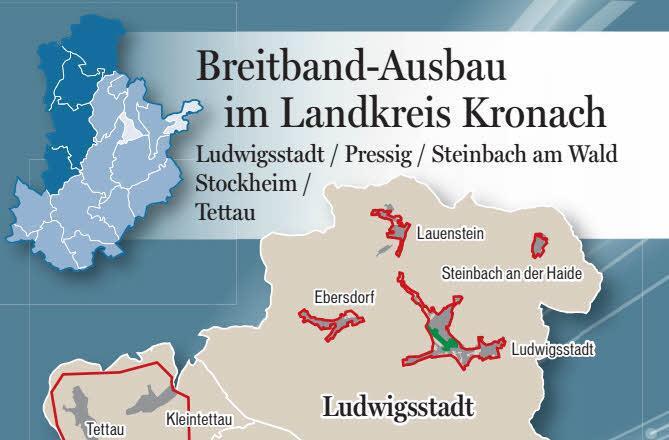 Im Landkreis Kronach sind formell alle 18 Kommunen Teil des Förderverfahrens, in 15 findet ein geförderter Ausbau statt. Dieser wird mit 80 (bei wirtschaftlich stärkeren) oder 90 Prozent der Baukosten bezuschusst, den Rest stemmen die Kommunen. Zusätzlich gibt es noch Bereiche, die für Netzbetreiber so lukrativ sind, dass sie sie auf eigene Kosten ausbauen.