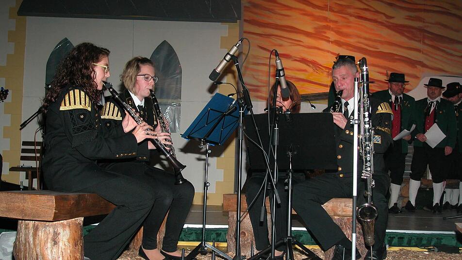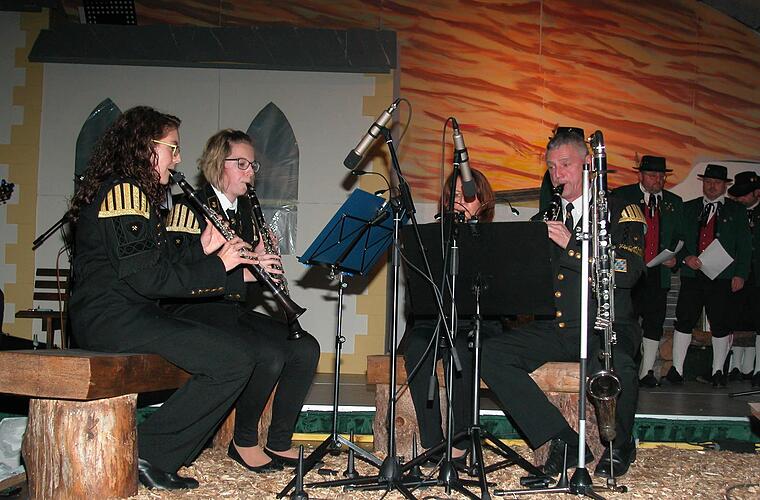 Die Gesangsgruppe der Zecher mit Alexander Fröba bereicherte ebenfalls das Programm. Schließlich begleitete Michael Lutz - auch als Solist - die Sänger mit seinem Akkordeon. Der Auftritt des Klarinettenensembles der Bergmannskapelle Stockheim mit Matthias Friedrich, Anna Buckreus, Viktoria Viering und Rita Stendel war eine weitere Bereicherung.