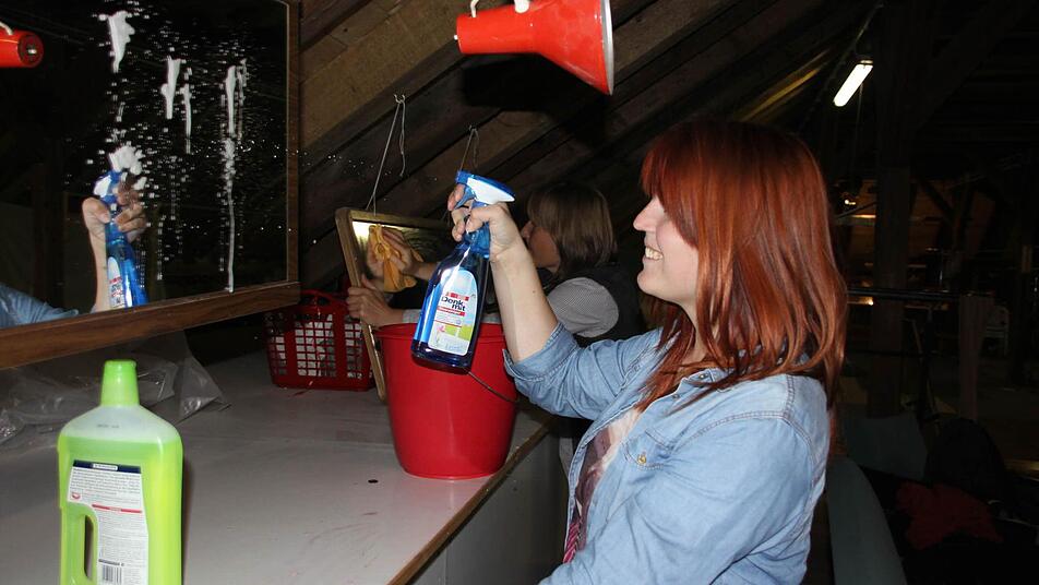 Putzen ist angesagt Doch bevor Requisiten, Kostüme, Schminksachen und weitere Utensilien in die "Umkleidekabine" der Faustler eingeräumt werden, heißt