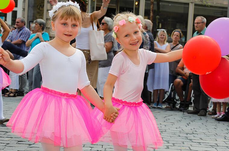 "Wir haben insgesamt 1570 Kinder dabei", freute sich Korb über eine riesige Schar auf dem Marktplatz vor dem Rathaus. Begleitet von rund 300 Erwachsenen bahnte sich der bunte Zug von Nachwuchssportlern, -tänzerinnen, -feuerwehrleuten & Co. seinen Weg durch die Kronacher Innenstadt. Die Kinder und Jugendlichen vertraten 44 Gruppen und sechs Kapellen.