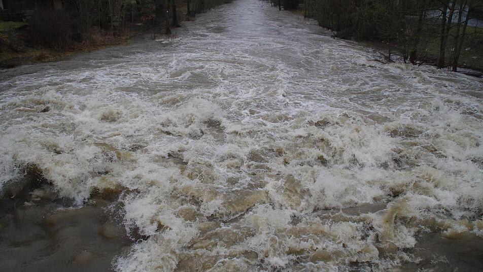 Die Flüsse sehen an diesem Donnerstag mächtig aus, wenn sie sich, wie in Unterrodach, mit Wellen und Gischt unter den Brücken hindurch drängen oder, wie in Küps, ihr Bett in ganzer Breite ausfüllen. Dort blickt ein Mann auf die beeindruckende Rodach. Er macht sich Gedanken. "Das soll noch mehr werden, wenn bei der Ködeltalsperre erst noch das Wasser abgelassen wird", habe er gehört.
