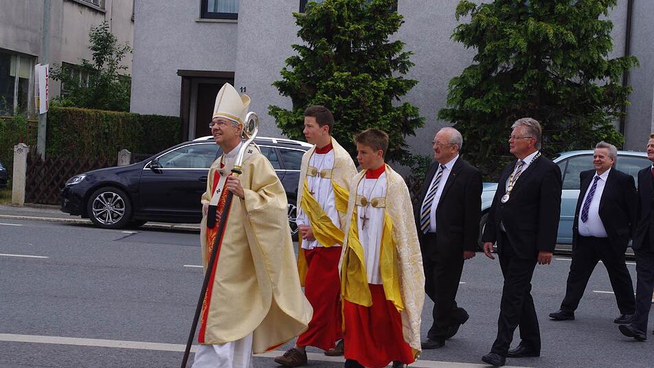 Im Wind flatternde Fahnen, ein festlich geschmücktes Küps und eine Pfarrkirche, die nach einer umfassenden Generalsanierung im neuen Glanz erstrahlt: In das Gotteshaus zieht ein kleiner Festzug ein. Die Mitglieder der Kirchengremien nehmen daran ebenso teil wie die Geistlichkeit sowie Vertreter der Politik - vor allem aber ein besonderer Ehrengast: Erzbischof Ludwig Schick.