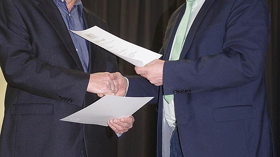 "40 Jahre sind eine lange Zeit. Das schaffen nur die wenigsten. Das verdient Hochachtung und Respekt", verdeutlichte Dörfer. Du hat ein Stück bayerische Schulgeschichte mit erlebt und mit gestaltet und auch ein großes Stück Kronacher Lehrerfußballgeschichte mit geschrieben. Als Fußballer sei er ein exzellenter Teamplayer gewesen - und so auch als Lehrer. Für seinen Unruhestand wünschte er ihm viel Muse, als schönste Gabe von allem. Unter großem Applaus überreichte er ihm die beiden Urkunden des Freistaates Bayern - für den Ruhestand sowie für seine Beförderung zum Studienrat.
