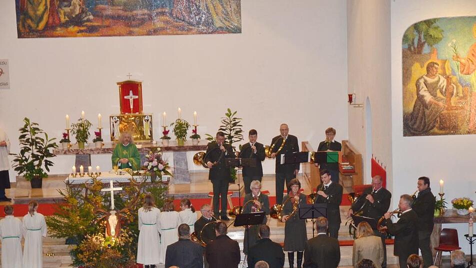 Zelebrant der Hubertusmesse war Pater Helmut Haagen OMI, musikalisch führte das Bläsercorps der Jäger-Kreisgruppe Kronach durch die Hubertusmesse mit Fanfaren und Jagdstücken französischer Tradition aus "La Grande Messe de Saint Hubert".