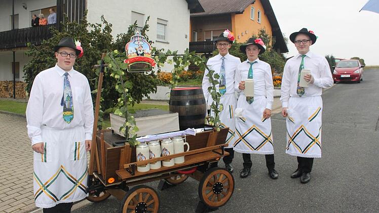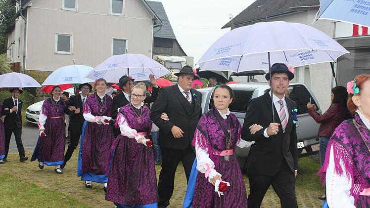 Auch mussten die Zechburschen- und Mädchen in den vergangenen Wochen kräftig anpacken, um den traditionellen Rahmen mit "Zechbaam", Zelt, geschmückten "Büschen" herzustellen. Aber es hat sich gelohnt, denn nicht nur für die "neuen", sondern auch für die "alten" Zechburschen und -mädchen war es ein tolles Gefühl, als sie - begleitet von den Frankenwaldmusikanten - durch das Dorf zogen und anschließend in den "Plan" einmarschierten.