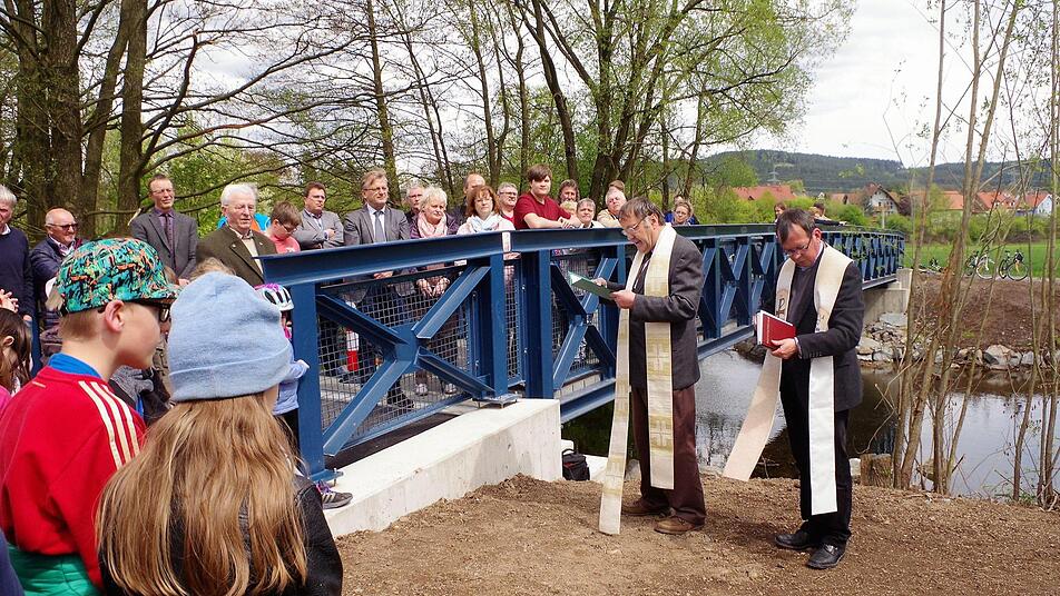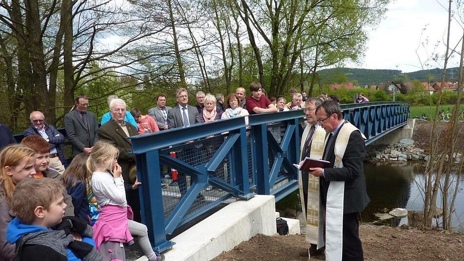 Der uralte Engelessteg, der vor allem den Ortsteil Reitsch mit dem Haßlachtal verbindet und im September vorigen Jahres abgerissen wurde, hat eine 23 Meter breite Stahlkonstruktion erhalten und ist nun feierlich eingeweiht worden. Die neue Geh- und Radwegbrücke über den Haßlachfluss ist jetzt 2,50 Meter breit und kostet 240 000 Euro. Die Zuschussbeteiligung der Regierung beläuft sich auf 65 Prozent.