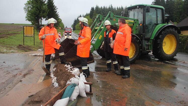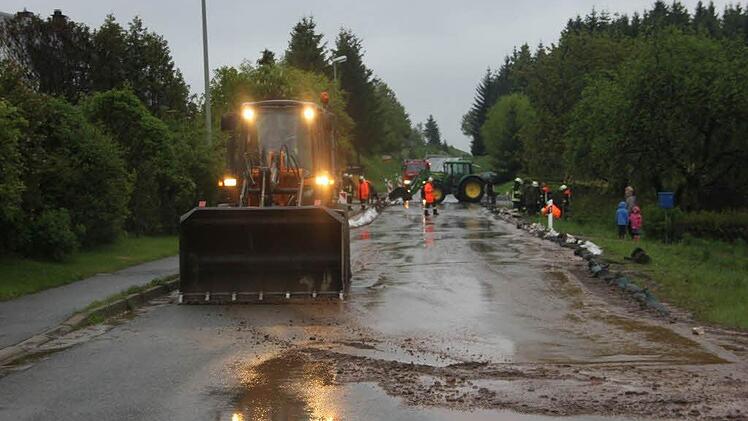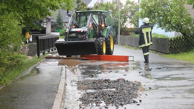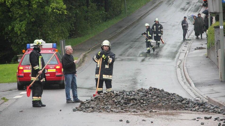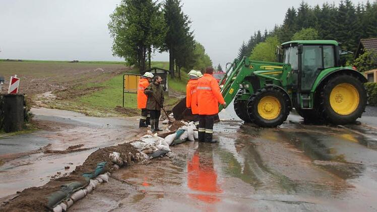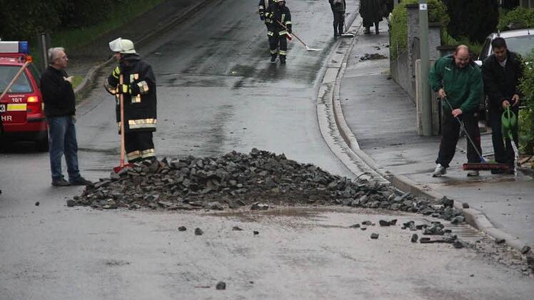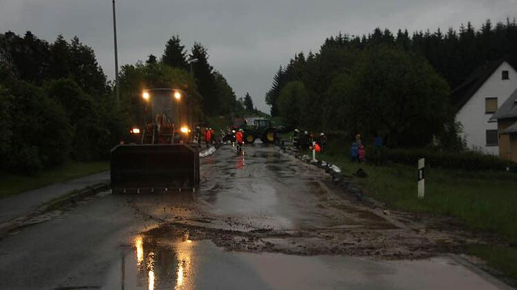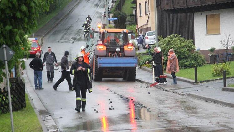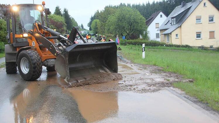 Rund 70 Feuerwehrleute waren am Freitagabend in Steinbach am Wald und in Buchbach im Einsatz, um Straßen von Schlamm, Geröll und Dreck zu befreien. Zwei Straßen wurden gesperrt.