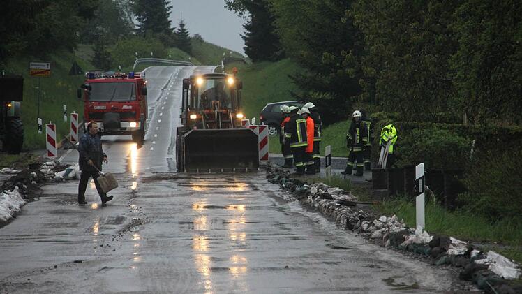 Mit dem stark einsetzenden Regen gegen 19 Uhr wurden die Windheimer Straße in Steinbach am Wald und die KC 9 am Ortsausgang von Buchbach, Richtung Rothenkirchen, mit Schlamm und Geröll überflutet. Beide Straßen mussten gesperrt werden.